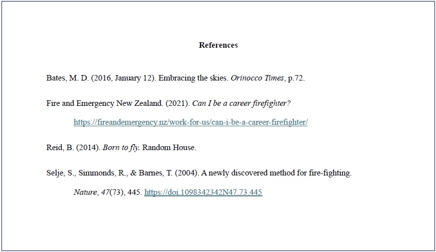 It is essential you use a referencing guide to learn how to format the reference for each particular type of source you use, e.g. journal article, news item, report, etc.